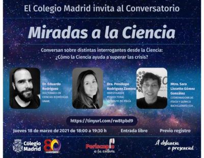 Periscopio a la cultura los invita al Conversatorio “Miradas a la Ciencia”, que se llevará a cabo el jueves 18 de marzo, en un horario de 18:00 a 19:30 horas.