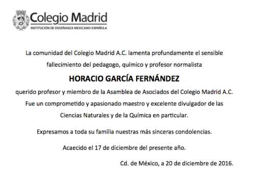 Lamentable fallecimiento de Horacio García Fernández Escrito por Madrid en 20 diciembre, 2016. Deja un comentario Compártenos Anterior Siguiente
