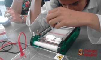 En una segunda etapa, la última semana de marzo y la primera de abril del presente año alumnos de cuarto semestre de bachillerato realizaron dos prácticas de biología molecular, con el material del laboratorio portátil y bajo la supervisión de Dra. Claudia Segal Kischinevzky y Q. Viviana Escobar Sánchez, con el apoyo alumnas de opción B y profesores del colegio.