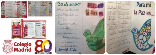 En los últimos años, el 30 de enero se celebra el Día Escolar de la Paz y la No violencia, el propósito es el de generar en nuestros niños y niñas una cultura de no violencia entre compañeros, de saber que se puede lograr una mejor convivencia resolviendo los conflictos de manera pacífica. Así que iniciamos con un video en el que los datos que les dieron fue el por qué justo ese día se resalta la necesidad de acciones que nos lleven hacia la paz, mencionando por supuesto a Mahatma Gandhi, líder pacifista que defendió y promovió esta práctica. Después de comentar el contenido del mismo preguntamos a nuestros pequeños qué es para ti la paz, a lo cual las respuestas que nos dieron nos sorprendieron gratamente: “la paz es armonía”, “significa cuidar a los demás”, “es respetar”, “nos da tranquilidad” entre otras. Para concluir la actividad les pedimos que en una carta escribieran lo que para ellos significaba la paz, así como un poema, una frase, un dibujo que tuviera que ver con lo que representa la paz. Sus trabajos quedaron hermosos.