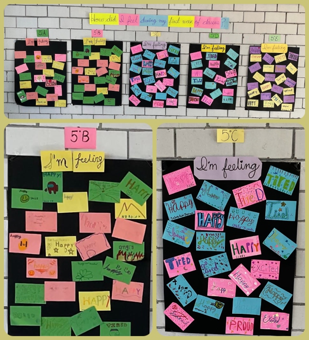 Back at My School! In English class, fifth-grade students took part in an activity in which they reflected on and analyzed the feelings that best represented their first week of school. To do this, they had to consider several factors: seeing their friends again, no longer being able to wake up late in the mornings, starting once more with their responsibilities such as studying and doing homework, in short, returning to their study routines. The crucial part was that they had to choose just one word from a long list, a word that described the feeling that mostly prevailed in them during those first five days of the 2025–2026 school year. Finally, they created a group poster where each student placed the word that best represented how they felt. It was very rewarding to see that, although some students said they wished for a longer vacation, the feeling that prevailed was happiness that they were truly glad to be back at their school.