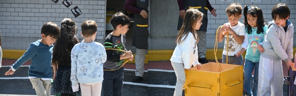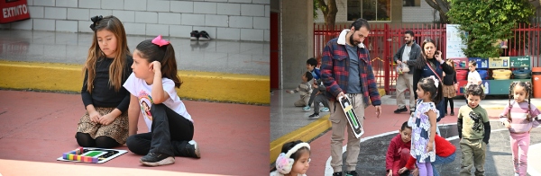 En su primera sesión, los niños y niñas de 3ro de preescolar miden la distancia recorrida por carritos de madera con distintos pesos de carga, después de un empujón o un jalón. Además, se divierten realizando recorridos cortos y seguros dentro de los mismos carritos de madera.