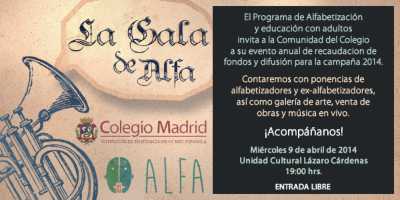 Invitamos a la Gala de Alfabetización que se realizará este próximo 9 de abril en la Unidad Cultural Lázaro Cárdenas del Colegio Madrid a las 19:00 hrs.