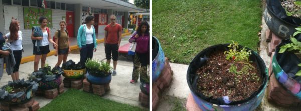Fotos: Alumnos de bachillerato visitando el área de siembra de la sección de preescolar del Colegio.